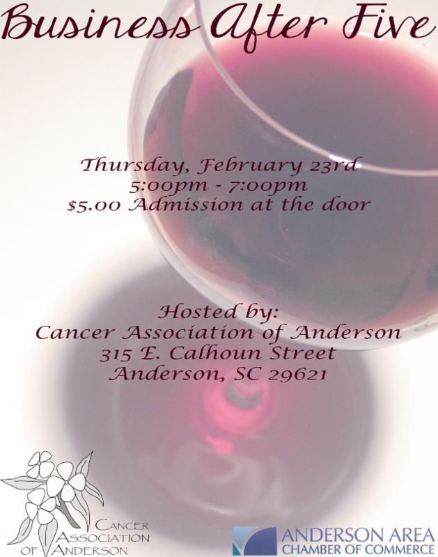 "Business After Five" is designed to provide the business community of Anderson County with an evening of socializing and networking in a relaxed atmosphere.